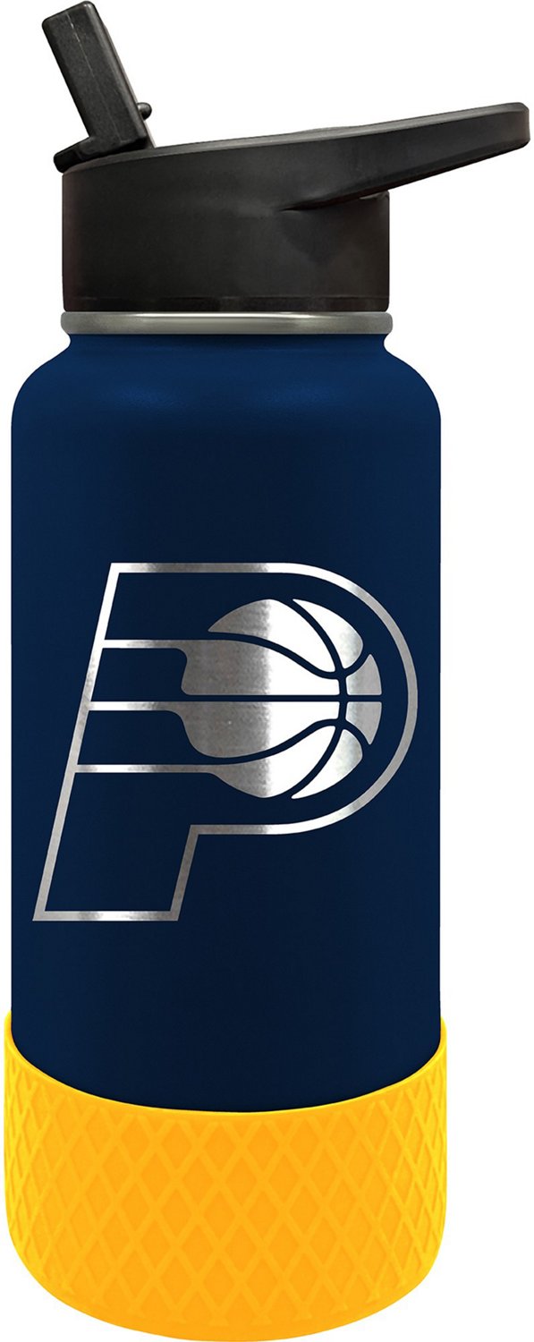 Enjoy your favorite game day beverage in the Great American Products Indiana Pacers 32 oz Thirst Hydration Water Bottle. The high-quality stainless steel offers everyday durability, and the vacuum insulation keeps your water refreshingly cold. The silicone grip helps prevent slipping, and the straw allows easy sipping. Team graphics show who you're rooting for.