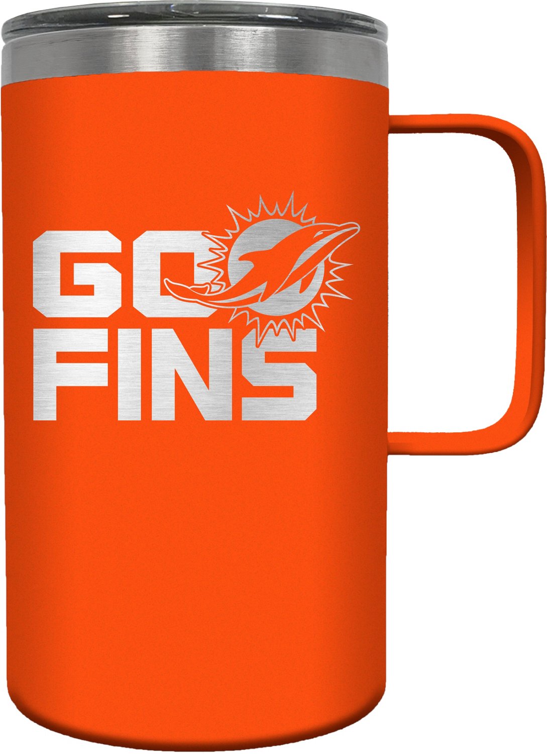 Cheer for the Dolphins while sipping your favorite drink from the Great American Products Miami Dolphins Hustle 18 oz Travel Mug. The vacuum insulation helps keep your beverage at the desired temperature, and the laser-etched team graphics make it clear that you're a true fan.