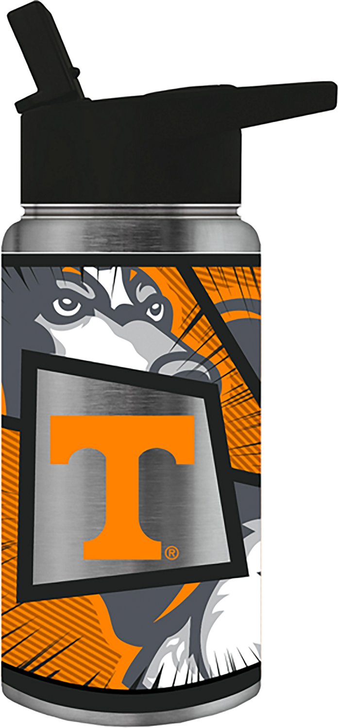 Stay hydrated while rooting for your favorite team when you wear the Great American Products Tennessee Volunteers Mascot 16 oz. Mini Thirst Water Bottle. Its stainless steel construction enhances durability. The vacuum insulation keeps your cold drinks cold and your hot drinks hot, and its screw on flip top lid with an internal straw stays secure on the go. The high definition wraparound Tennessee Volunteers graphics show off your team spirit.
