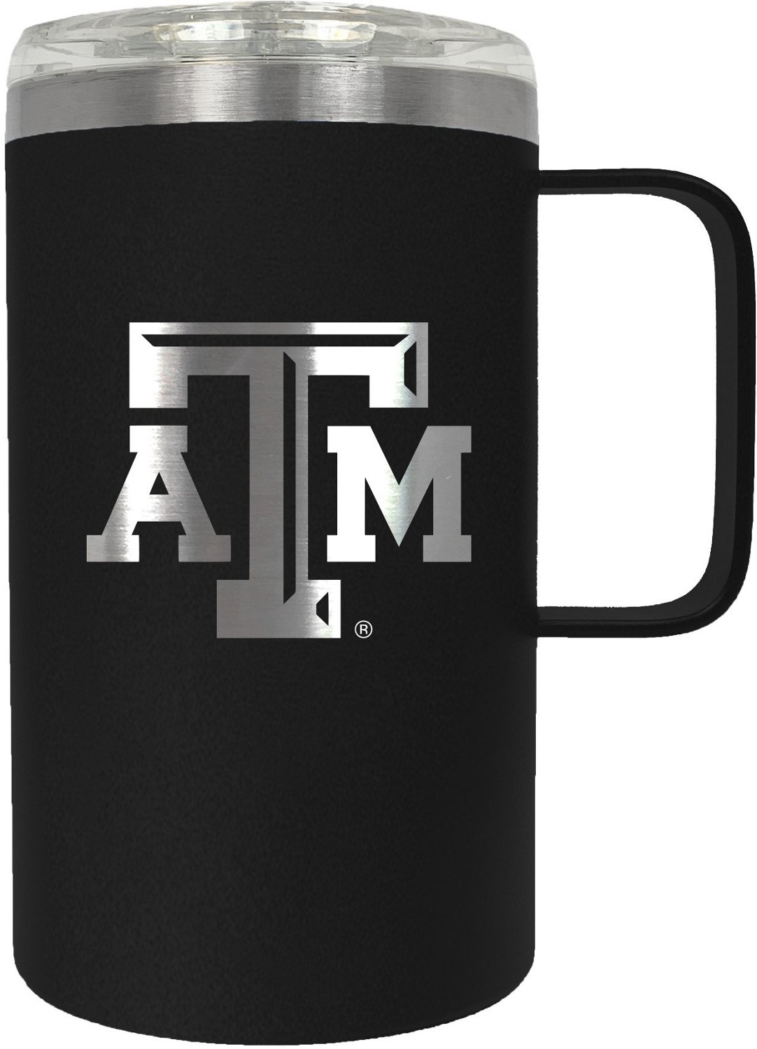 Enjoy a tasty beverage from the Great American Products Texas A&M University 18 oz Hustle Travel Mug. This gameday must-have offers laser-etched TAMU graphics to support the Aggies and is made of strong stainless steel with vacuum insulation to keep hot drinks hot and cold drinks cold.