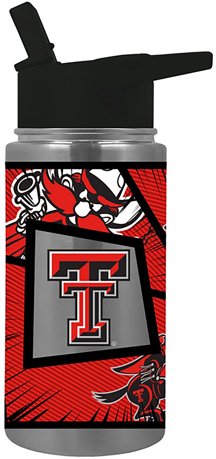 Stay hydrated while rooting for your favorite team when you wear the Great American Products Texas Tech Red Raiders Mascot 16 oz. Mini Thirst Water Bottle. Its stainless steel construction enhances durability. The vacuum insulation keeps your cold drinks cold and your hot drinks hot, and its screw on flip top lid with an internal straw stays secure on the go. The high definition wraparound Texas Tech Red Raiders graphics show off your team spirit.