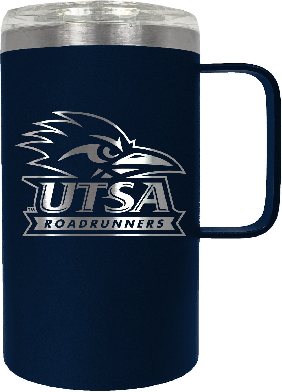 Enjoy a tasty beverage from the Great American Products University of Texas at San Antonio 18 oz Hustle Travel Mug. This gameday must-have offers laser-etched UTSA graphics to support the Roadrunners and is made of strong stainless steel with vacuum insulation to keep hot drinks hot and cold drinks cold.