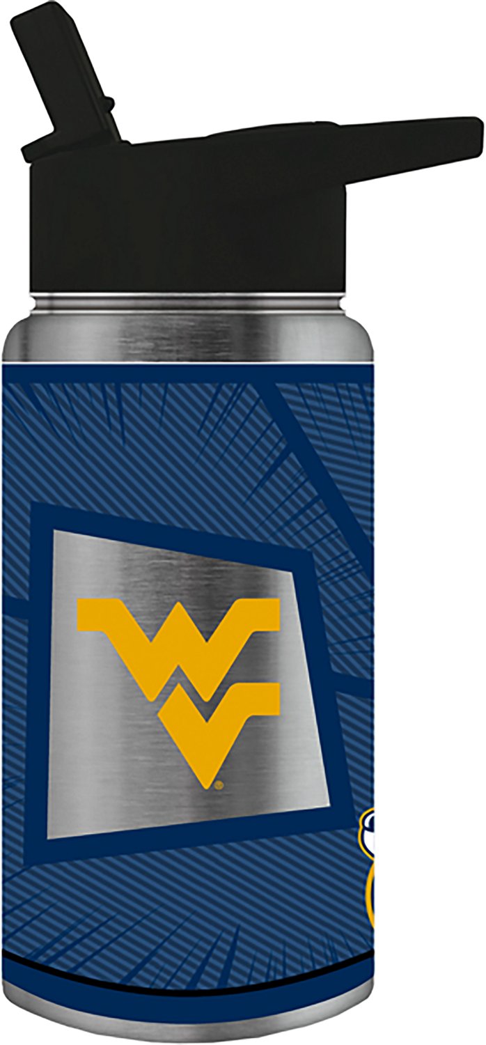 Stay hydrated while rooting for your favorite team when you wear the Great American Products West Virginia Mountaineers Mascot 16 oz. Mini Thirst Water Bottle. Its stainless steel construction enhances durability. The vacuum insulation keeps your cold drinks cold and your hot drinks hot, and its screw on flip top lid with an internal straw stays secure on the go. The high definition wraparound West Virginia Mountaineers graphics show off your team spirit.