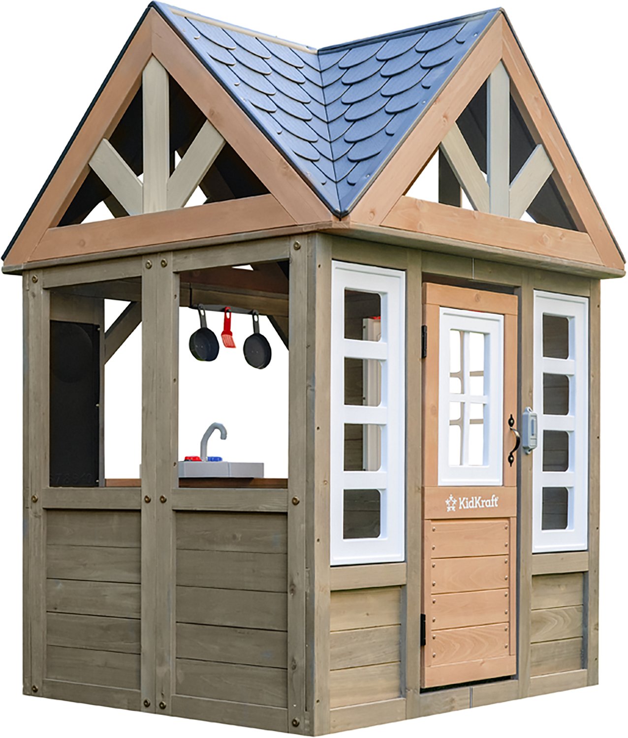 Let their imaginations and creativity run wild with the Greystone Wooden Kitchen Doorbell Outdoor Playhouse. The treated wood and durable plastic materials are low-maintenance and weather-resistant, and the working doorbell chimes and announces guests.