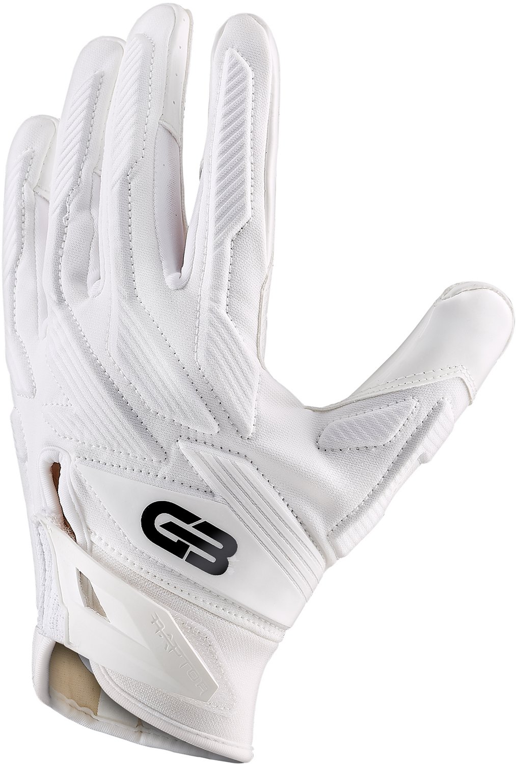 Play your best while protecting your hands with the Grip Boost Men's Raptor 2.0 Football Gloves. Its padded protection absorbs impact, reducing the risk of hand injuries. The Boost+ grip technology ensures that the ball remains securely in your grasp, and the back-of-hand has a unique compression material designed to conform to the contour of your hand. It is formulated to react and stick in any weather, encouraging play in rain or shine.