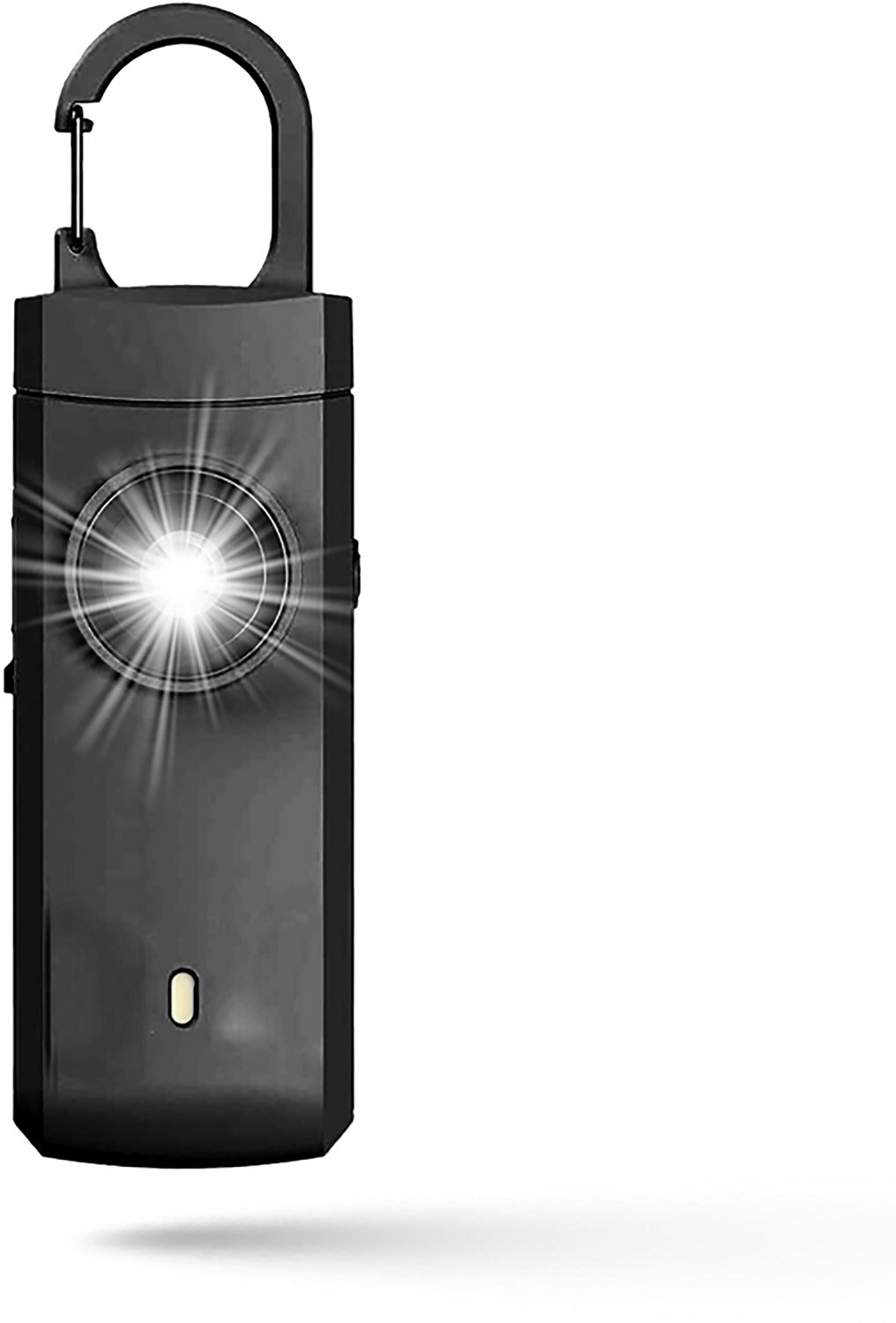 Have peace of mind while adventuring with the Guard Dog Security Safe and Sound Alarm and Flashlight. This lightweight and compact alarm attaches to your purse, backpack, keys or belt loop for easy access. When the keychain is pulled and removed, the alarm emits a 130-decibel sound and an LED strobe light that can be heard over 600 feet away.