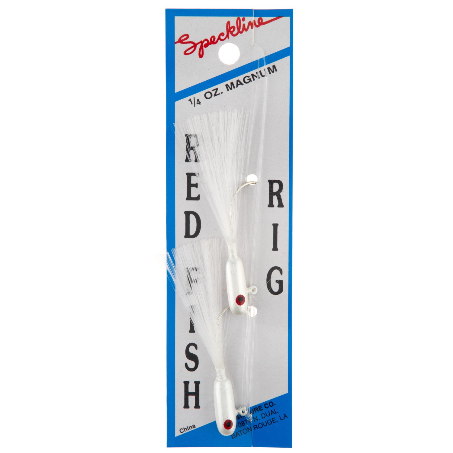 Land bites every time with the H&H Lure 3" Redfish Rig. The 2 prerigged lures work in tandem to simulate 1 chasing the other to attract bites from saltwater fish. 1/4 oz. 2/0 single hooks.