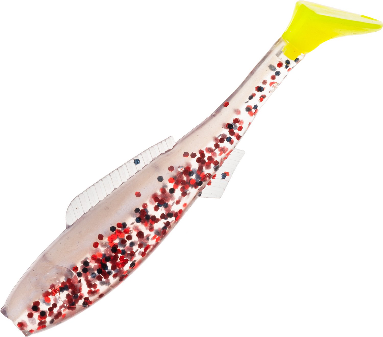 Soft plastic body mimics the appearance of baitfish