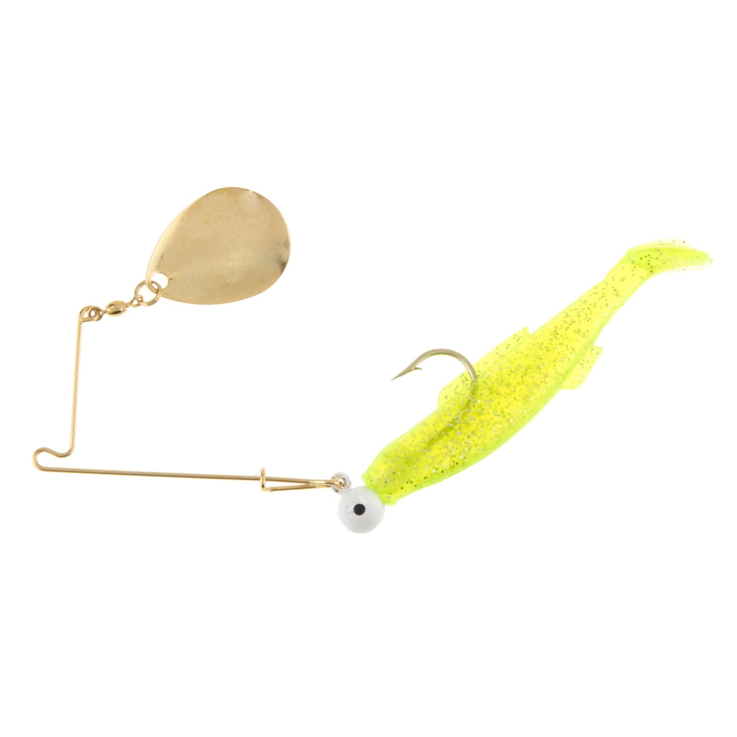 The H&H Lure Cocahoe Red Spin 1/4 oz Spinnerbait has soft plastic construction and is designed for use in saltwater. The eye looks realistic, and the spinner blade provides lifelike movement. Single Seaguard hook. 1/4 oz.