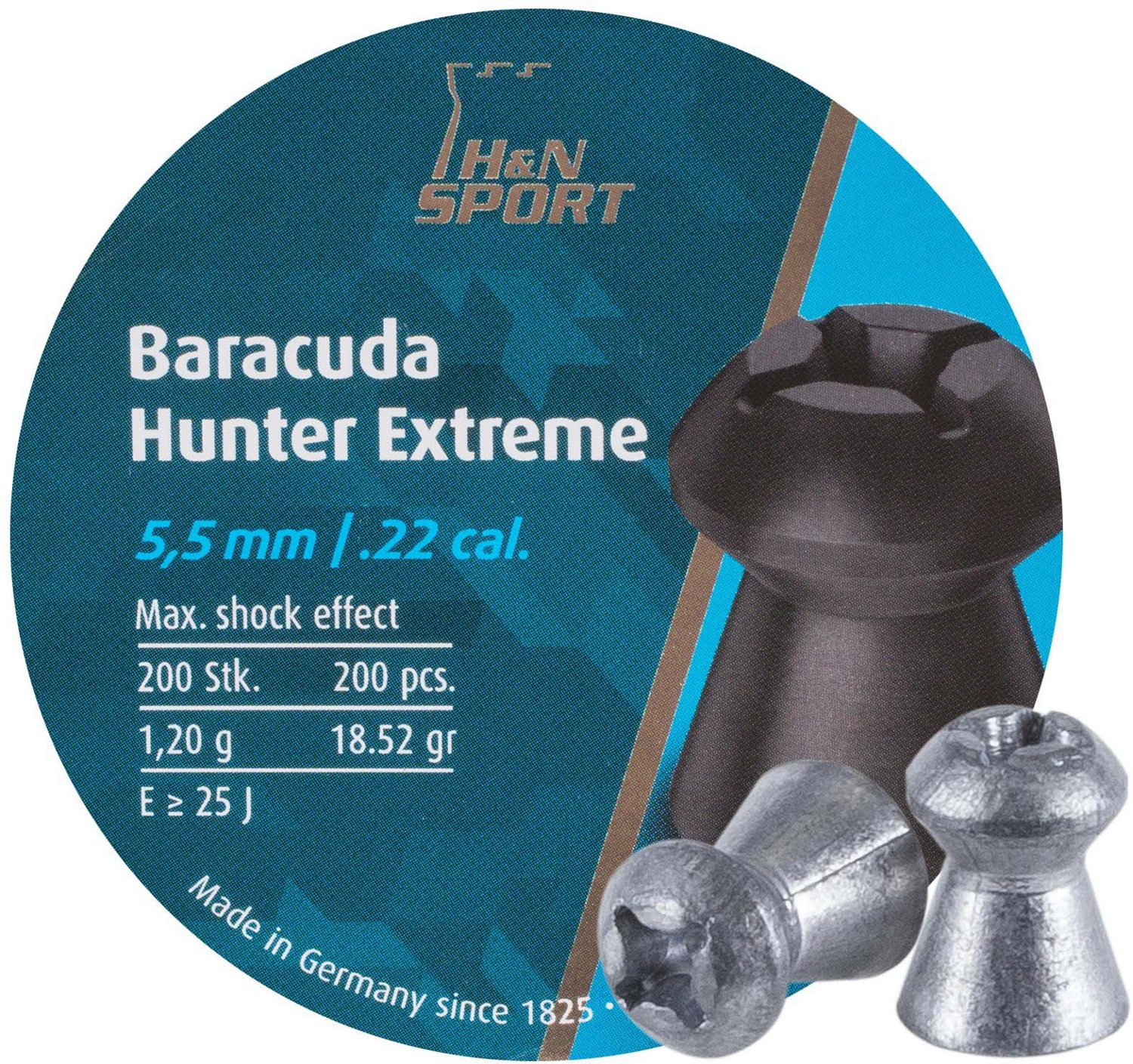 Stay prepared out in the field with the H&N Baracuda Hunter Extreme .22 Air Gun Pellets. These .22 caliber lead pellets boast 18.52 grains and feature 4 clip notches to increase mushrooming effects on impact. The screw-top tin provides secure storage and comes with 200 rounds per box.