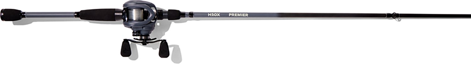Throw baits and lures with ease by using the H20X Premier 7 ft MH Baitcast Combo. The graphite frame offers lightweight handling, while the EVA split grip provides comfort. 9 aluminum oxide guides with tip ensure smooth casting, and 6 bearings help keep out debris.
