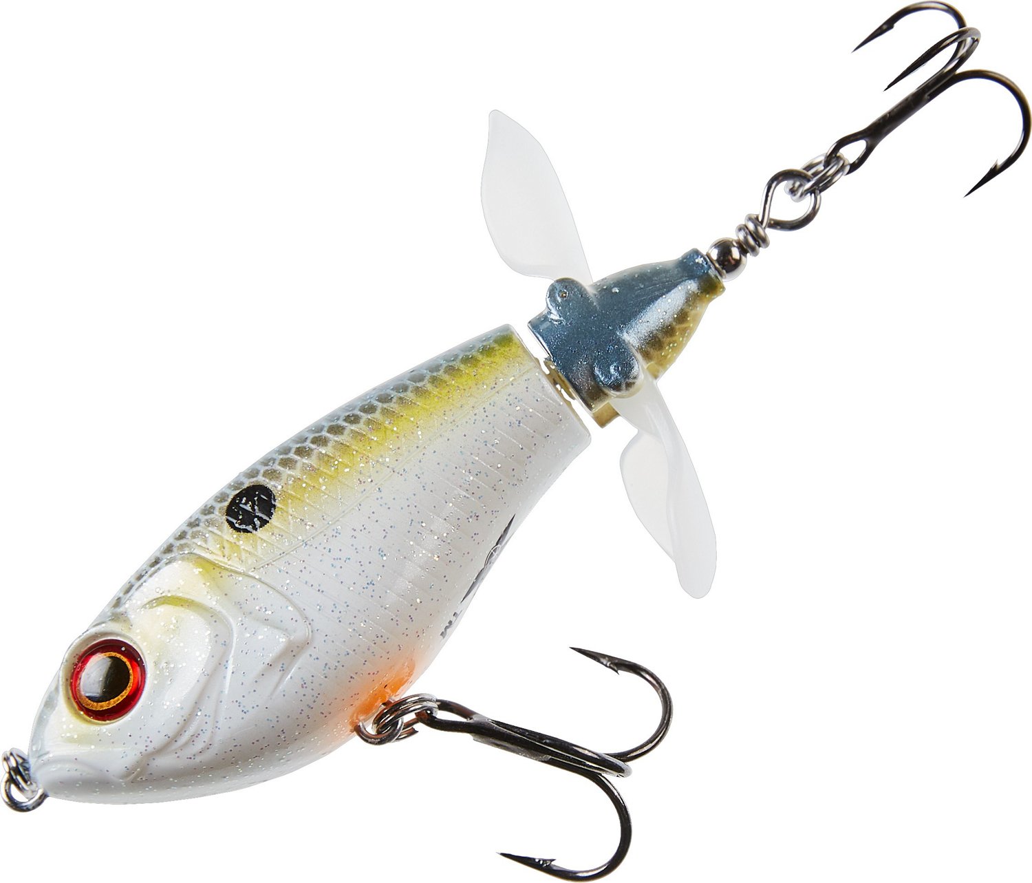 Attract freshwater bass using the H2O XPRESS Double Plop Bait. They create a subtle plopping sound to draw fish in. Plus, the props fold in while casting to achieve more distance.