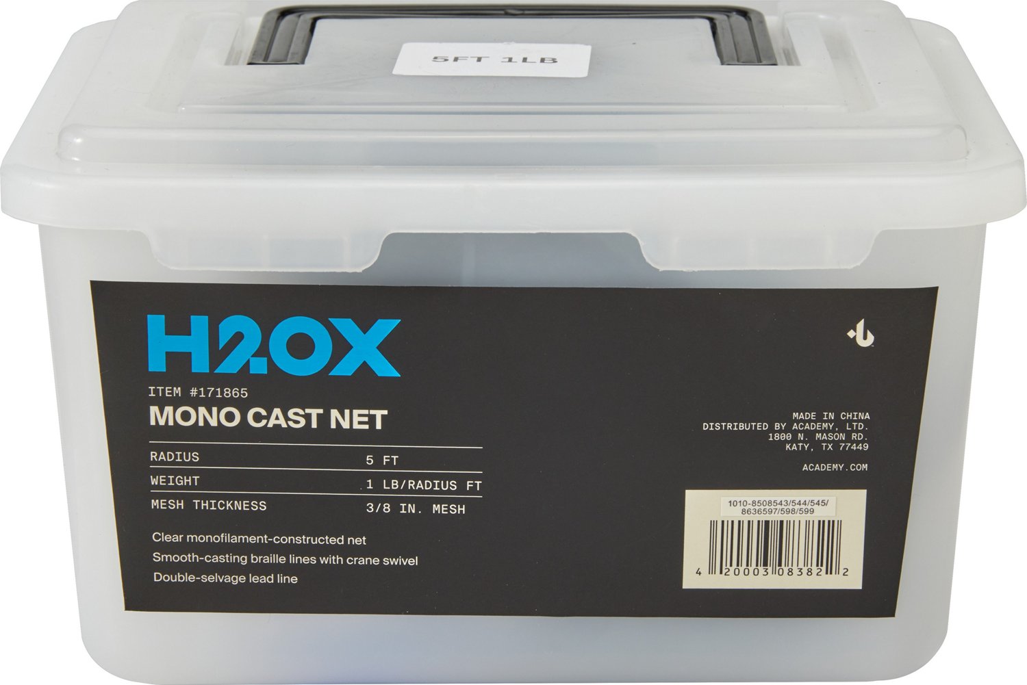 Net fish with ease using the H2OX 5ft 1Lb Monofilament Cast Net. Monofilament line delivers smooth casts, broad spreads and strong knots. Weights let the net sink quickly while a polyester cast rope allows easy retrieval.