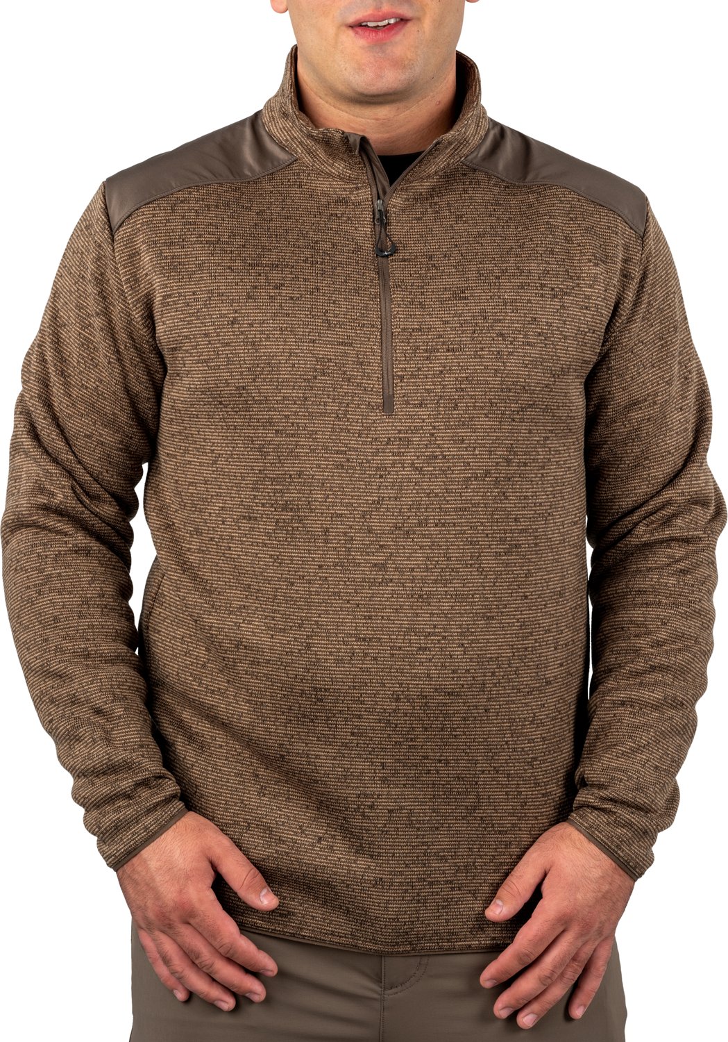 Stay warm on a chilly day with the Habit Men's 1/4 Zip Pullover Sweatshirt. The polyester material provides a comfortable feel, while the body and sleeve hem binding helps keep out the cold.