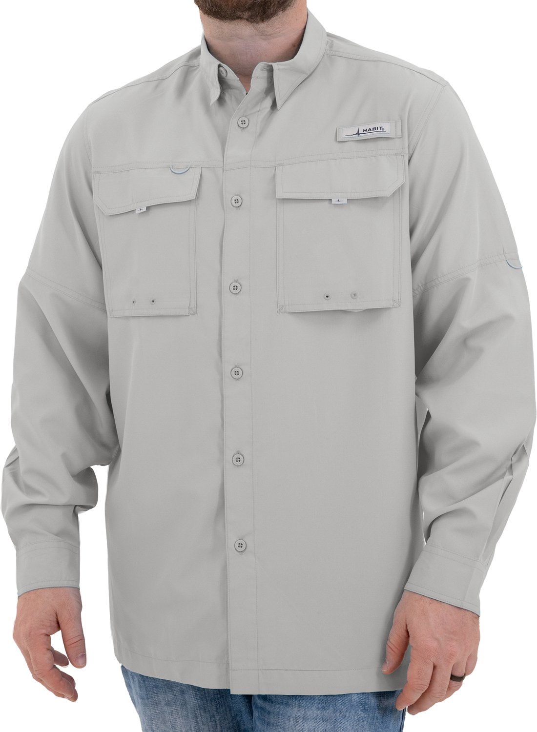 Put on the Habit Men's Flushing Bay River Long Sleeve Shirt and head out for an exciting day. This shirt is made of 100% polyester with sweat-powered cooling technology and moisture-wicking properties to help you beat the heat, and the Solar-Factor UPF 50+ UV Protection allows you to stay protected against the sun's rays.