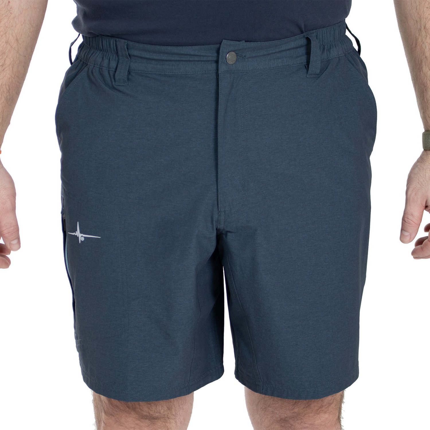 Whether you're on the boat or on land, you'll be comfortable in the Habit Men's Shadow Series Hybrid Shorts 9 in. The nylon, polyester and spandex blend provides freedom of movement, while the Solar-Factor technology offers UPF 50+ sun protection. The zippered cargo pocket lets you keep small items handy, and the fabric is designed to dry quickly and wick away moisture.