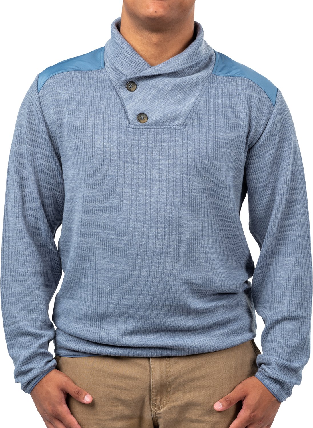 Stay warm with the Habit Men's Shawl Collar Pullover Sweatshirt. The polyester blend provides a comfortable feel, while the moisture wicking technology helps keep you cool and dry. The body and sleeve hem binding maintains warmth.