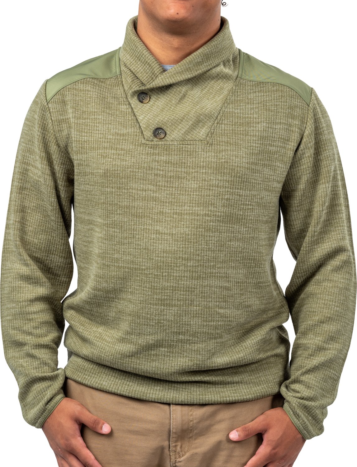 Stay warm with the Habit Men's Shawl Collar Pullover Sweatshirt. The polyester blend provides a comfortable feel, while the moisture wicking technology helps keep you cool and dry. The body and sleeve hem binding maintains warmth.