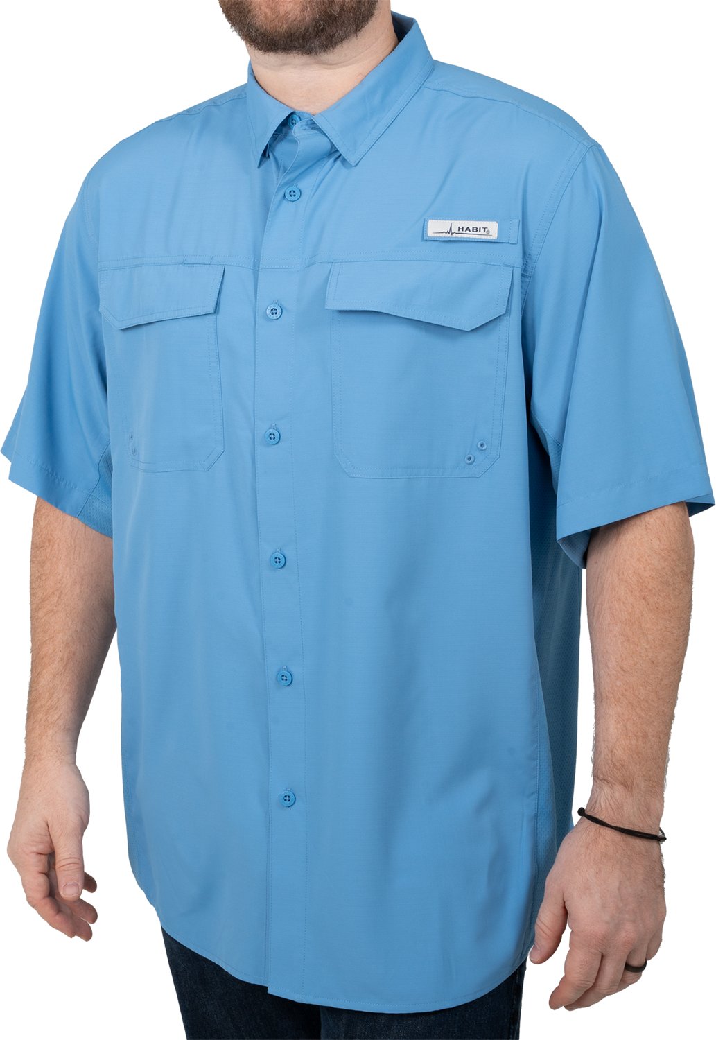 Put on the Habit Men's Trappers Cabin Hybrid Fishing Shirt and head out for an exciting day. This shirt is made of 100% polyester with sweat-powered cooling technology and moisture-wicking properties to help you beat the heat, and the Solar-Factor UPF 50+ UV Protection allows you to stay protected against the sun's rays.