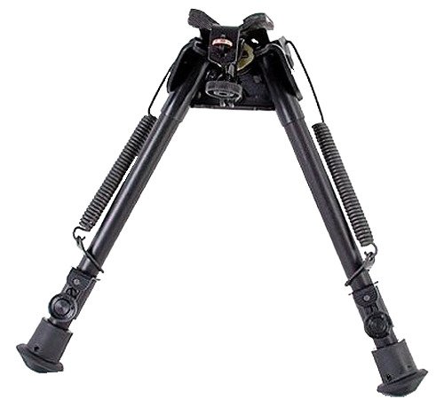 Shoot accurately with the Harris L Series Bipod. Made of heat-treated steel and alloys with an anodized finish, this bipod has spring-loaded folding legs and can clamp to most Q.D. stud-equipped bolt-action rifles. Sling attachment. Hinged base. Usable as a benchrest bipod or while prone.