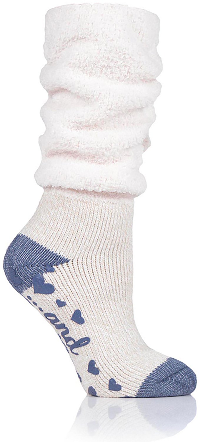 Keep your toes warm with the Heat Holders Women's Cozy Slouch Lounge Socks. The advanced thermal yarn offers warmth, and the fiber composition of 58% acrylic, 36% polyester, 5% nylon and 1% elastane retains heat. The non-binding design is diabetic friendly, increasing circulation, and the nonslip grippers on the bottom provide sure footing.