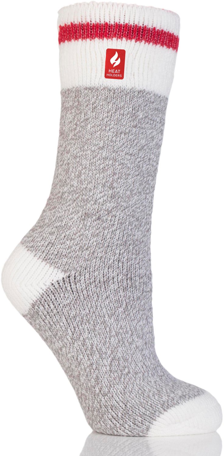 Keep your toes warm with the Heat Holders Women's Snowdrop Cream Block Twist Crew Socks. The advanced thermal yarn offers warmth, and the fiber composition of 91% acrylic, 5% nylon, 3% polyester and 1% elastane retains heat. The non-binding design is diabetic friendly, increasing circulation, and the brushed interior provides a soft feel.