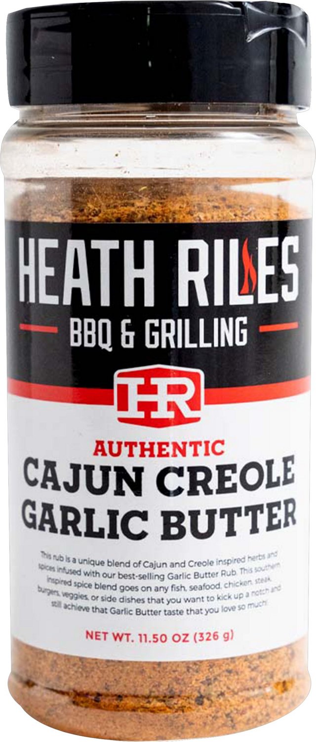 Elevate your next grillfest with the delicious flavor of Heath Riles BBQ 16 oz Cajun Garlic Butter Rub. This unique blend combines buttery garlic flavor with a mix of Cajun and Creole inspired spices for an extra spicy kick. It's ideal on seafood, chicken, steak, vegetables or any other grilled dish.