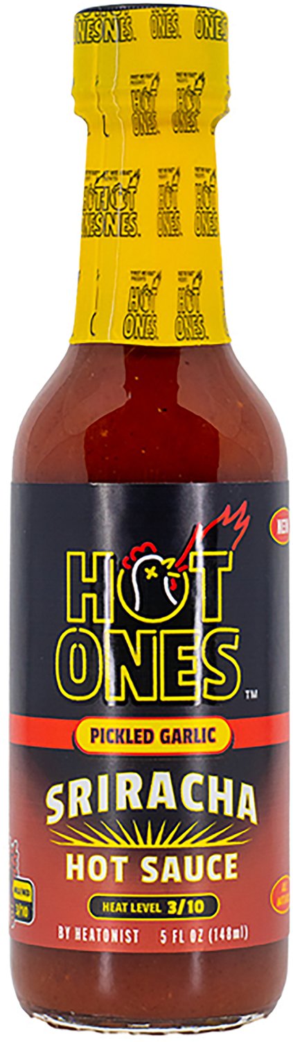 Try a new spin on a classic condiment with the Heatonist Hot Ones Pickled Garlic 5 oz Sriracha. Pickle, garlic, and key lime join the classic ripe red jalapeño base to form a flavorful taste. Take note that this sriracha variation is spicier than classic styles.
