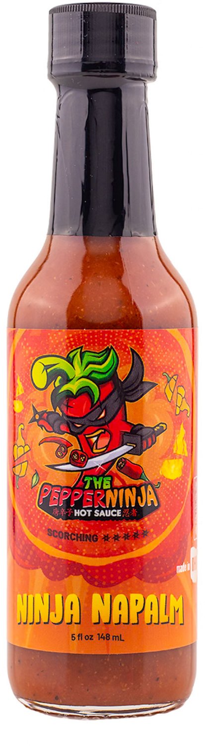 Enjoy lots of heat packed in a small bottle with the Heatonist Ninja Napalm Hot Sauce. This hot sauce is made with a blend of spices, vinegar, and lime juice for mouth-watering flavor. Yellow Moruga Scorpion peppers provide a heat that sneaks up on you, creating a dual experience in your mouth. This zero-calorie hot sauce is gluten-free and vegan.