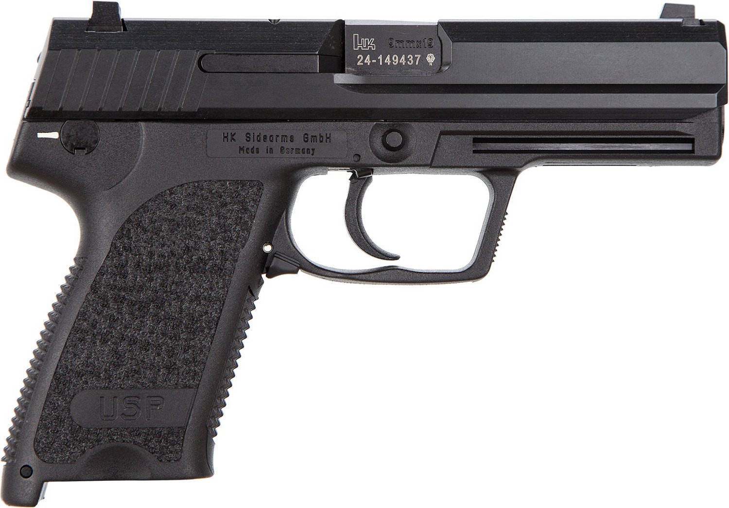 The Heckler & Koch USP V1 9mm Luger Pistol has universal mounting grooves and a flared recurve trigger guard. It also has a polygonal bore profile and 9 trigger firing modes.