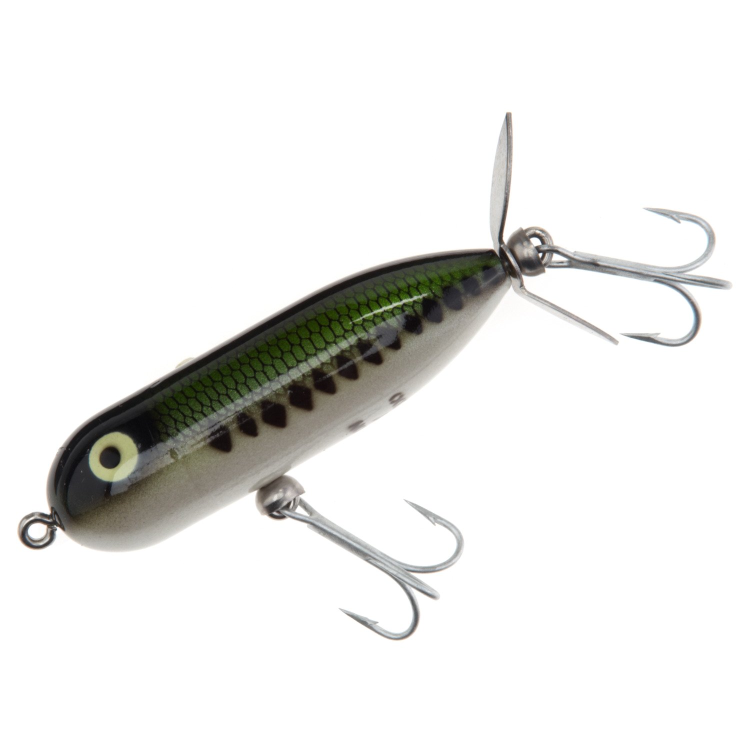 Catch your limit using the Heddon Baby Torpedo Lure that is designed for freshwater use. The realistic appearance and lifelike action attract bites, and the two size 4 treble hooks secure your catch.