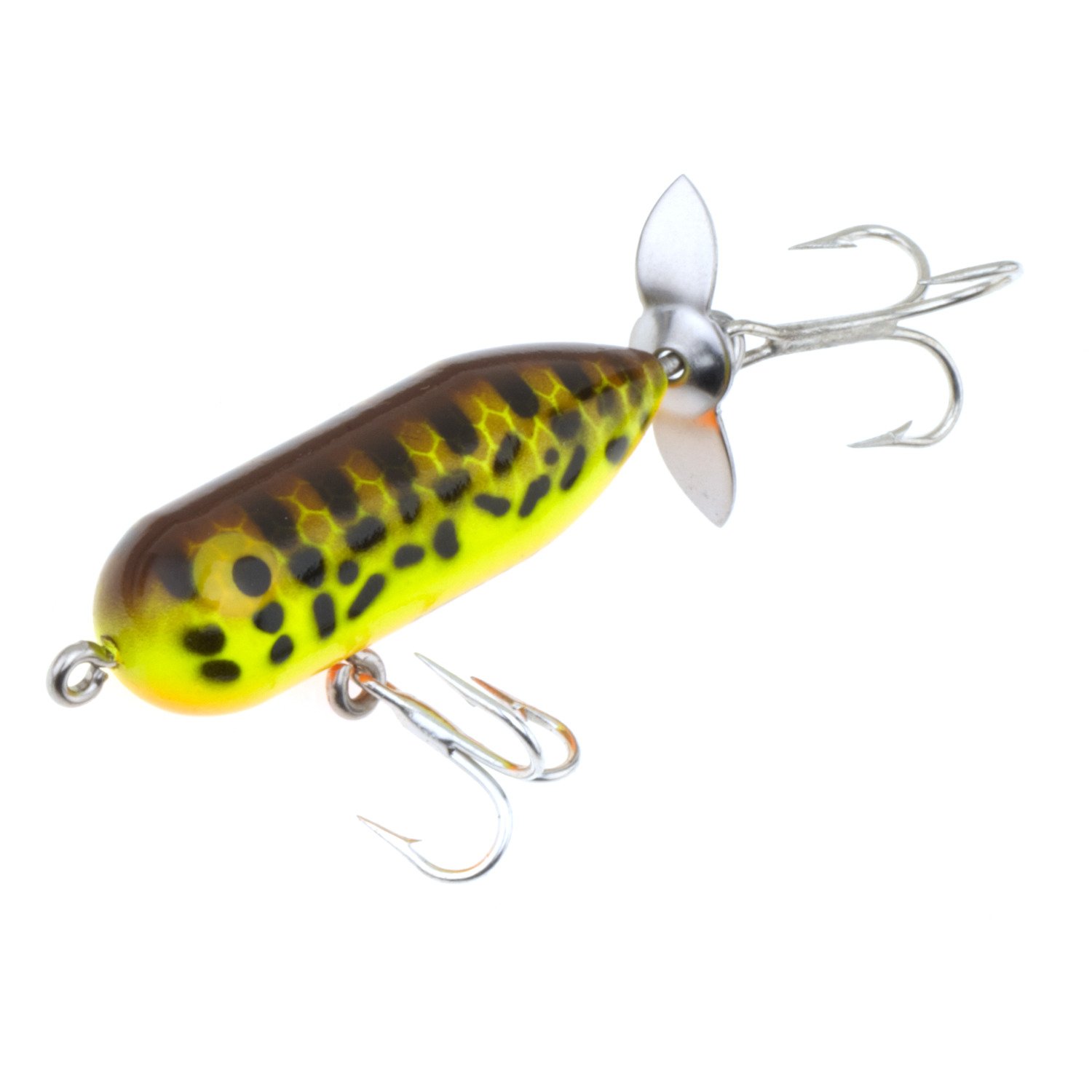 Enjoy successful results when you fish with the Heddon Teeny Torpedo 1-1/2" Lure. This freshwater lure features a natural-looking design to entice fish to your line, and the 2 size 10 treble hooks secure your catch.