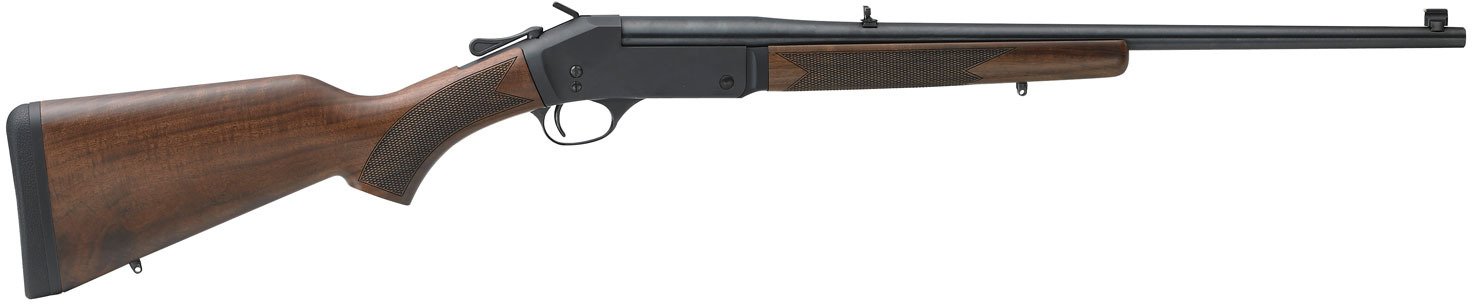 Offering a 1-shot capacity, the Henry Singleshot .44 Remington Magnum Break-Open Rifle is constructed from a walnut stock, a round barrel and a steel receiver. Plus, this rifle's metal parts feature a blued finish. Additional features include the bead front sight and semibuckhorn rear sight. No manual safety.