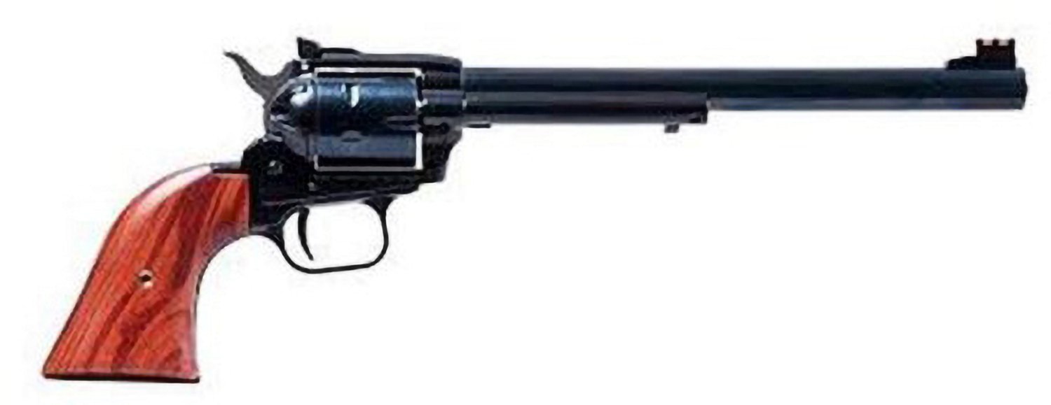 The Heritage Rough Rider Cocobolo .22 LR 9in Revolver is a single action rimfire revolver designed to imitate classic Western firearms. Its alloy steel barrel and zinc alloy frame are protected by an oxide finish, with a cocobolo wood grip. It is equipped with a fixed front sight, notch rear sight and manual safety.