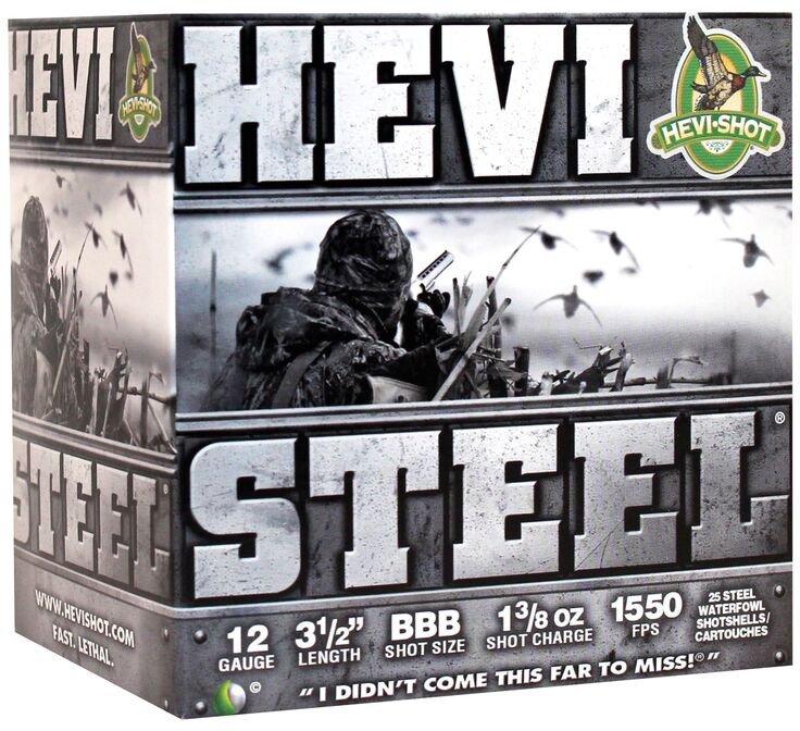 Take aim at birds on your next hunt with the HEVI-Shot HEVI-Steel Waterfowl 12 Gauge Shotshells. These shotshells are designed with a high-density pattern for reliability when you're hunting waterfowl. 25-round box. Made in USA.