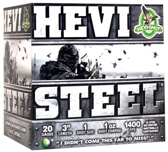 Take aim at birds on your next hunt with the HEVI-Shot HEVI-Steel Waterfowl 20 Gauge Shotshells. These shotshells are designed with a high-density pattern for reliability when you're hunting waterfowl. 25-round box. Made in USA.