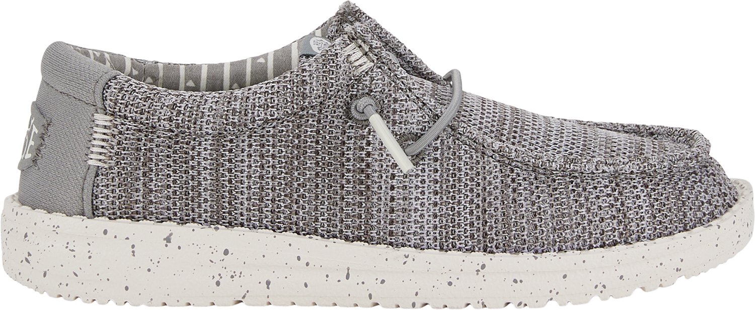 Take on the day in the Hey Dude Boys' Wally Stretch Mesh Shoes. Their stretch mesh upper enhances comfort. The lightweight flexible outsole improves your range of motion, and their removable foam insole allows customization. The elastic laces secure the shoes.
