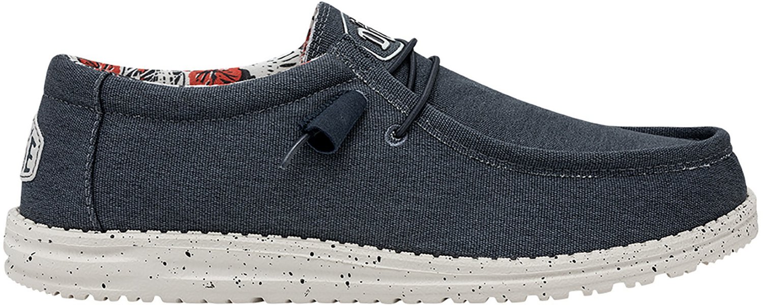 Get ready for all of life's adventures with the HEYDUDE Men's Wally Stretch Canvas Slip-On Shoes. These iconic moccasins feature stretchy cotton canvas uppers with padded collars and elastic laces for easy slip-on style. Ultralight outsoles won't weigh you down.