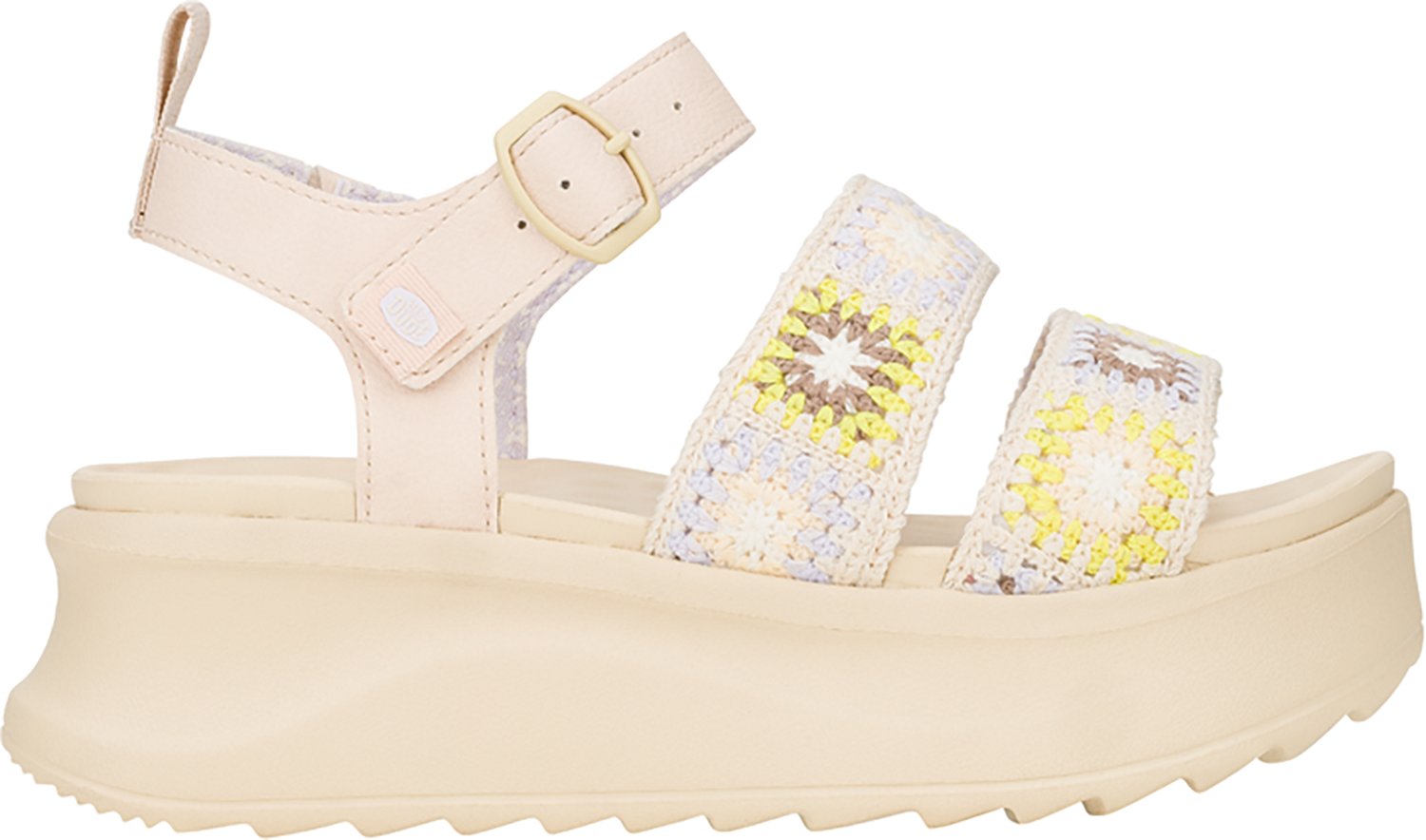 Slip into everyday comfort with these Hey Dude Women's Delray Buckle Cottage Crochet Sandals. 53% is made from 80% terylene and 20% cotton and 47% is made from 60% PU and 40% polyester for a lightweight and comfortable fit, and the sandals feature contoured EVA footbeds for underfoot support and airflow.
