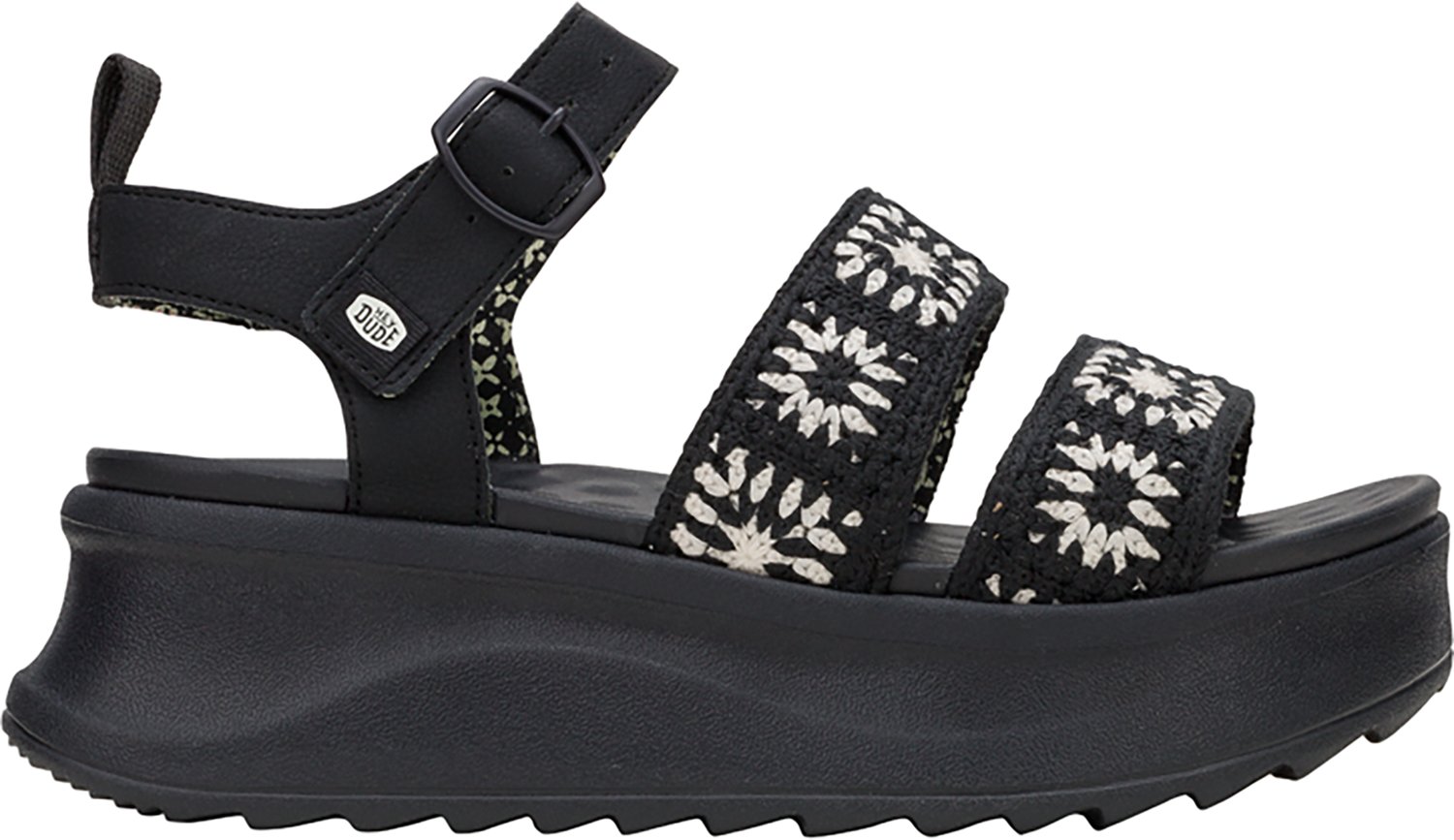 Slip into everyday comfort with these Hey Dude Women's Delray Buckle Cottage Crochet Sandals. 53% is made from 80% terylene and 20% cotton and 47% is made from 60% PU and 40% polyester for a lightweight and comfortable fit, and the sandals feature contoured EVA footbeds for underfoot support and airflow.