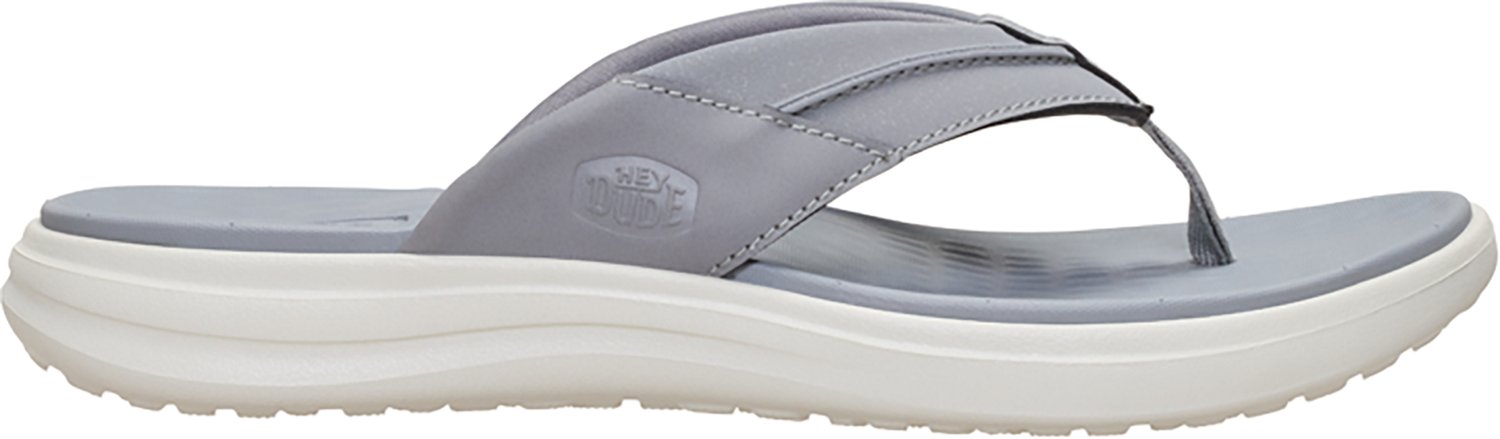 Cradle your feet at the beach with the HEYDUDE Men's Finn Flip Flops. This slip-on sandals are easy to kick off in the sand or at the end of a long day. The textile uppers and flexible outsoles offer lightweight durability, while the contoured EVA footbeds and microfiber-wrapped toe posts make them comfortable to wear all day.