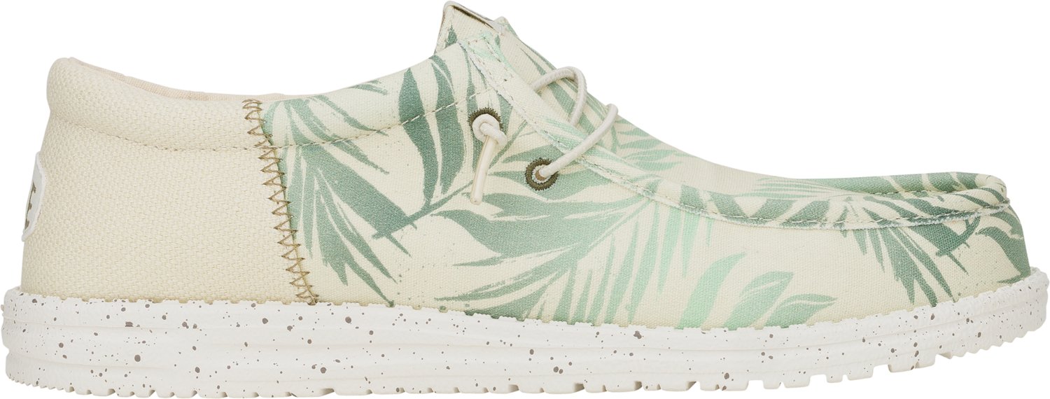 Kick back and relax in the HEYDUDE Men's Wally Funk Psych Palm Shoes. These tropical-island inspired shoes have a palm tree print for a warm-weather vibe. Textile uppers combine with foam insoles for cushioned comfort, while flexible outsoles help you keep your footing.