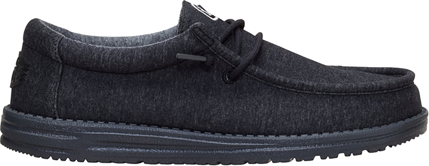 Enjoy the lived-in feel of the HEYDUDE Men's Wally Stretch Jersey Slip-Ons. The textile uppers afford durability, while the slip-on design allows for easy on/off.