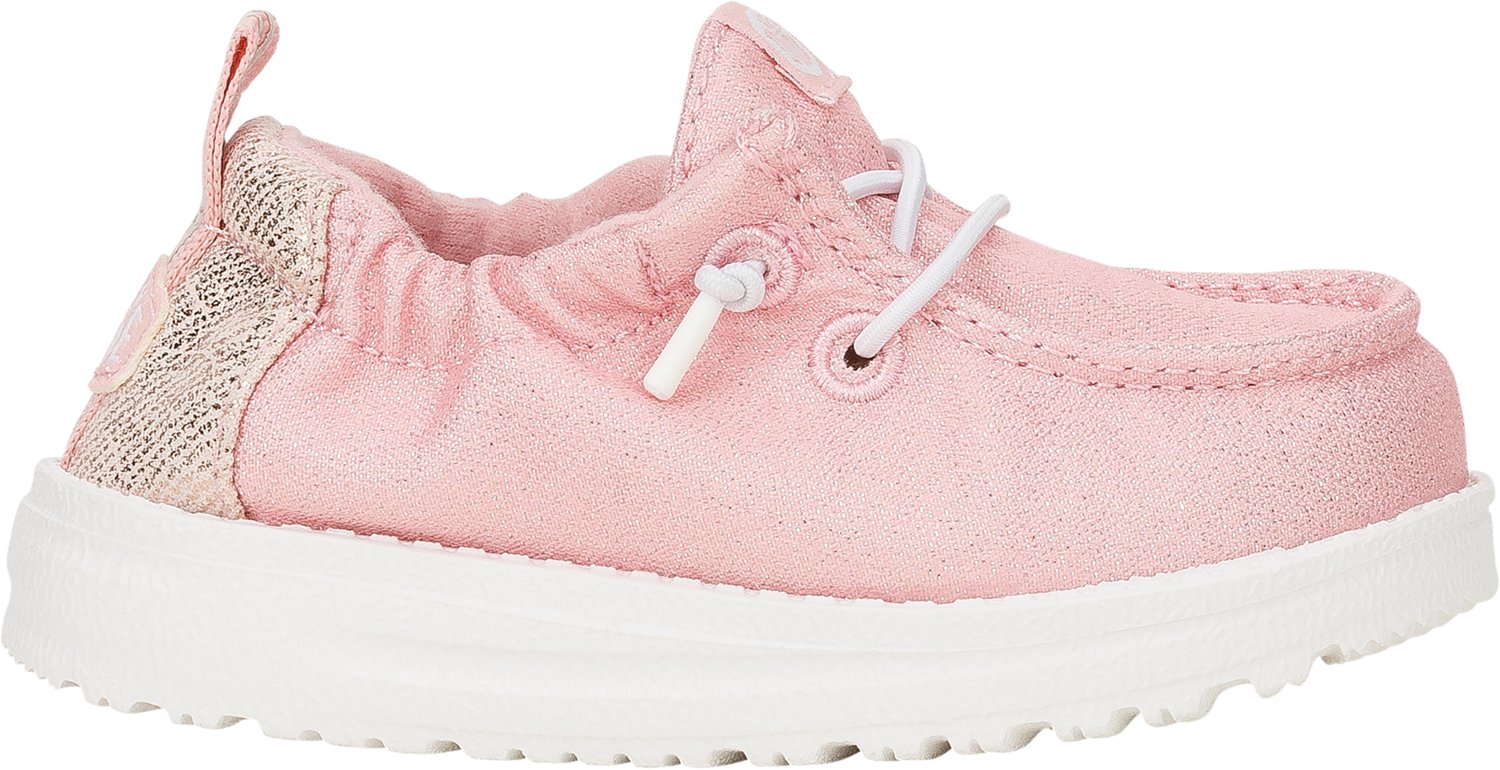 Let them explore comfortably in the HEYDUDE Toddler's Lil Dudes Classic Metallic Slip-on Shoes. These shoes are designed for little feet with elasticated backs and silicone heel pulls that make it easy to get ready. The foam midsoles and jersey lining cradle tiny feet in softness.