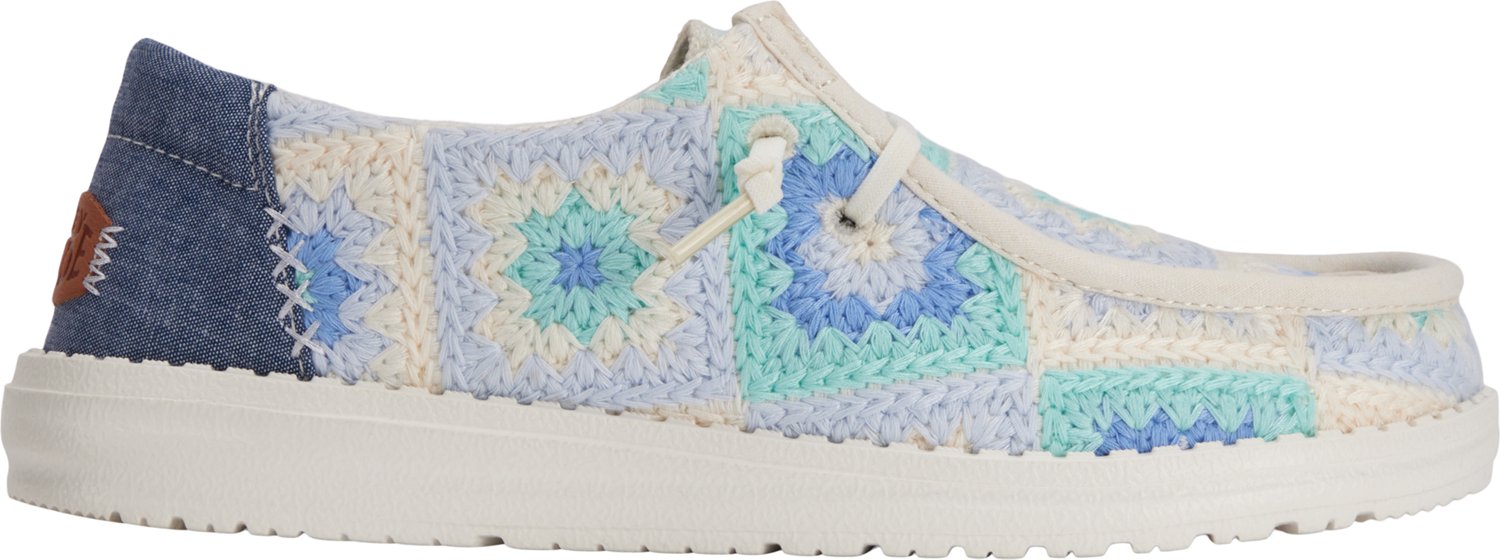 Take on the day in the HEYDUDE Wendy Cottage Crochet Slip-On Shoes. Their embroidered crochet upper has a chambray heel. The textile lining improves breathability, and their foam insole is removable. The elastic laces add an eye-catching detail.