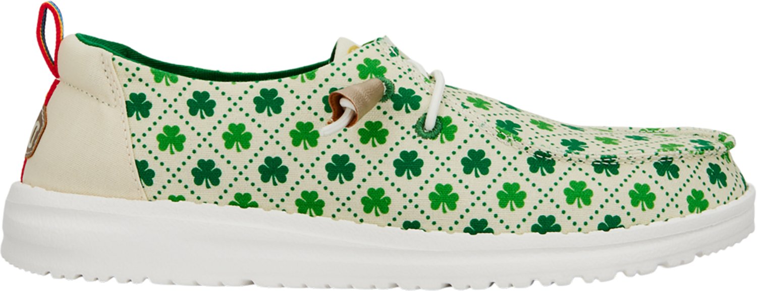 Slip into style when you wear the HEYDUDE Women's Lucky Shamrock Wendy Shoes. The cotton textile uppers lend a soft, lightweight feel with plenty of flexibility. The slip-on design allows easy wearing, while the shamrock print adds dazzle.