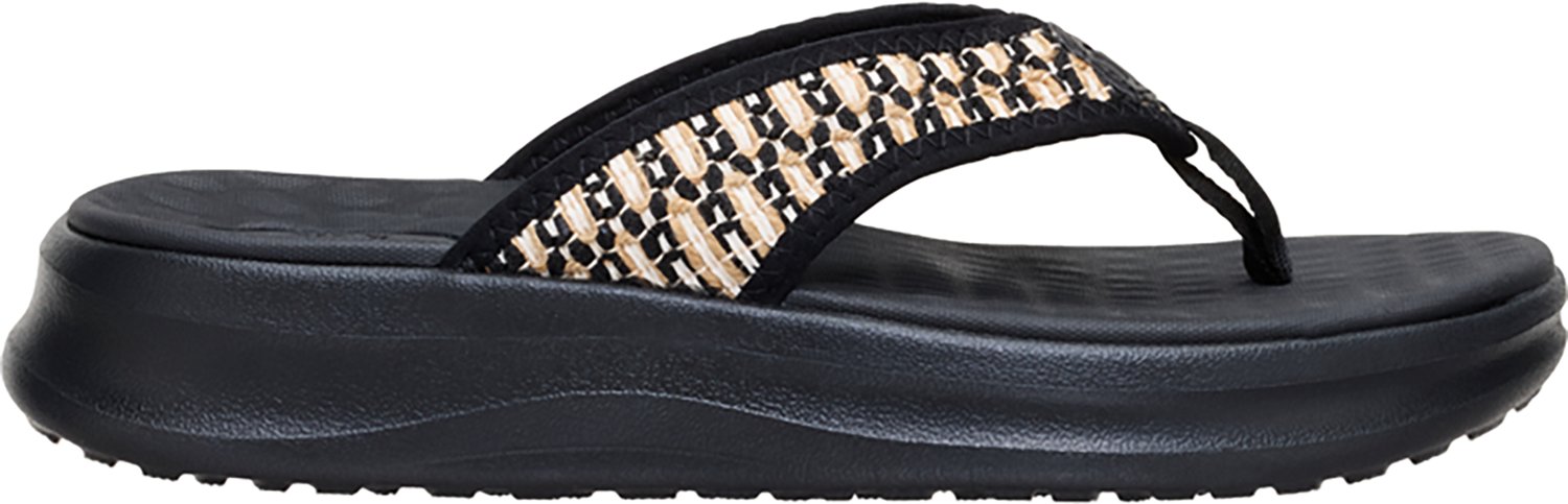 Enjoy the tide in the HEYDUDE Women's Tide Flip Flops. These beach-ready flip flops have comfortable footbeds and cushioned midsoles for a cloud-like feel you'll want to wear every day. The textile uppers and flexible outsoles offer sturdy durability for lasting wear.