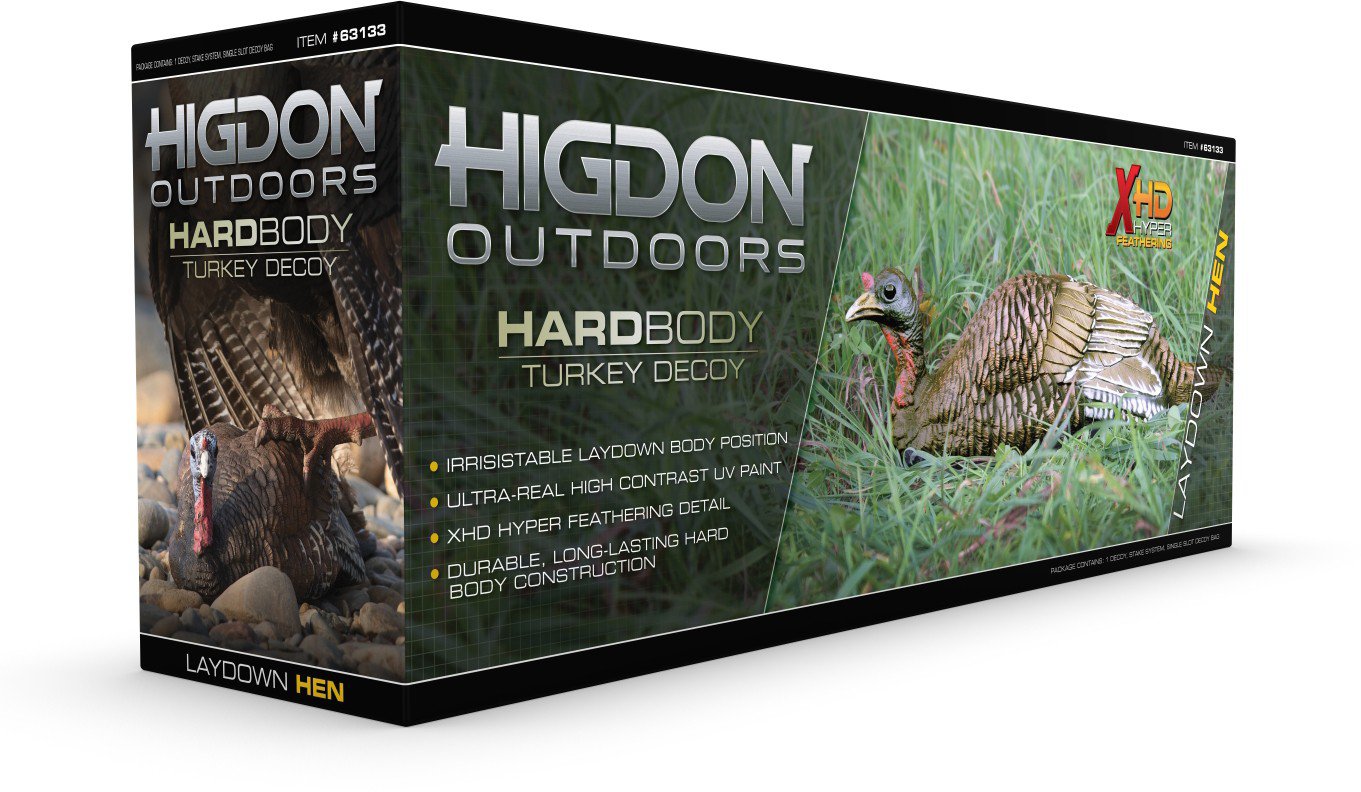 Enhance your hunt with the Higdon Laydown Hen Turkey Decoy. Constructed with durable, ultralightweight material, this decoy features a full-body design that mimics the posture a submissive hen, while the XHD Hyper Feathering details help create a realistic look.