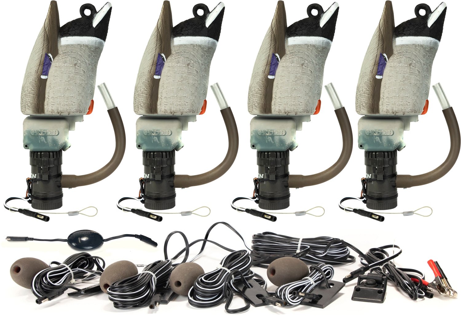 Lure in ducks with the Higdon Pulsator 2 Plug n Hunt Hard Wire System. The main wire extends up to 60 feet away to give you some distance from your target, while the duck butts spray water to simulate feeding.