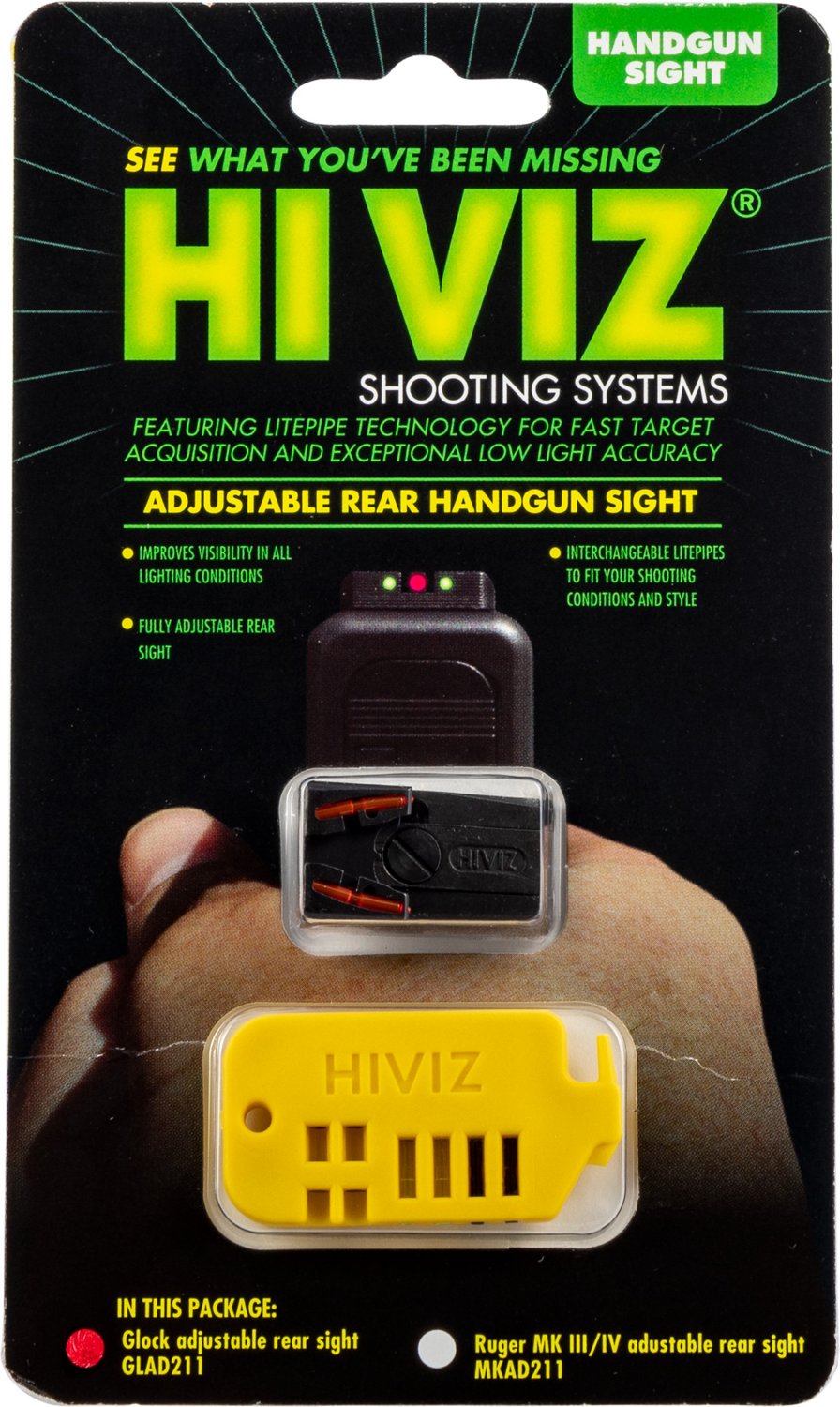 Improve your firearm with the HIVIZ Shooting Systems GLOCK Target Adjustable Rear Sight. This sight is constructed with steel and features windage and elevation adjusters.